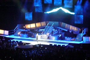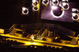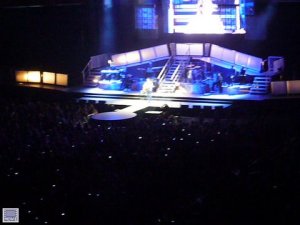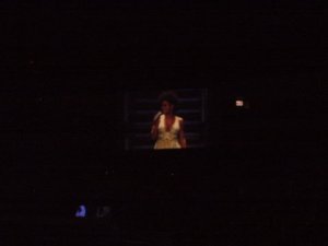 We’re at the concert. It was actually pretty enjoyable. Each of the top 10 contestants sang three songs. I conveniently took my bathroom break during Ramielle’s songs. I should also note she was wearing some very strange tight shirt/pants with bedazzled rhinestones. I also wrote some emails during Kristy Lee Cook’s patriotic, “I’m Proud to be an American” song. I can do without forced patriotism.